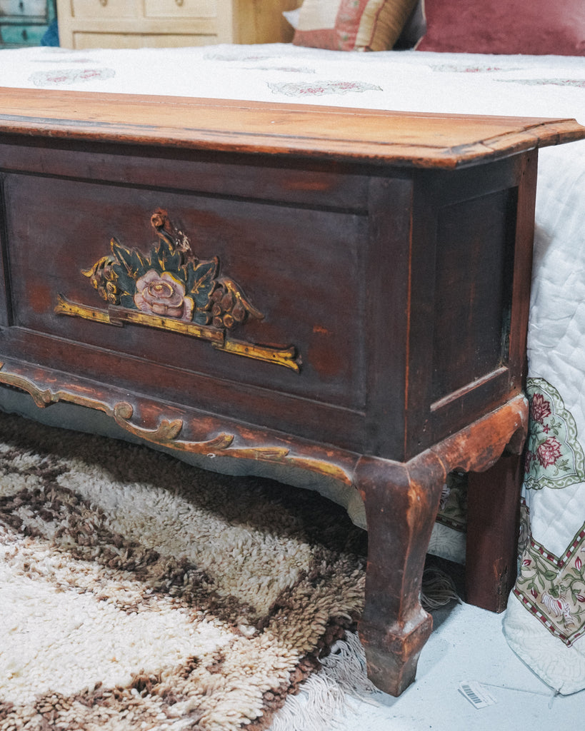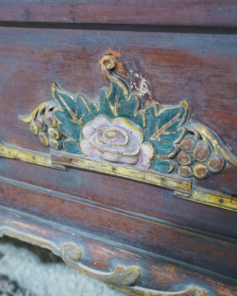 The Clem Console is a stunning antique wooden piece measuring 2.02 meters long, 57 cm high, and 9.5 cm wide. Its long, narrow design fits perfectly in hallways or tight spaces while adding elegance to your home. Featuring beautifully carved front panels, this console blends classic craftsmanship with practical style, ideal for displaying decorative items or keeping essentials organised. Elevate your living space with this unique and timeless console.
