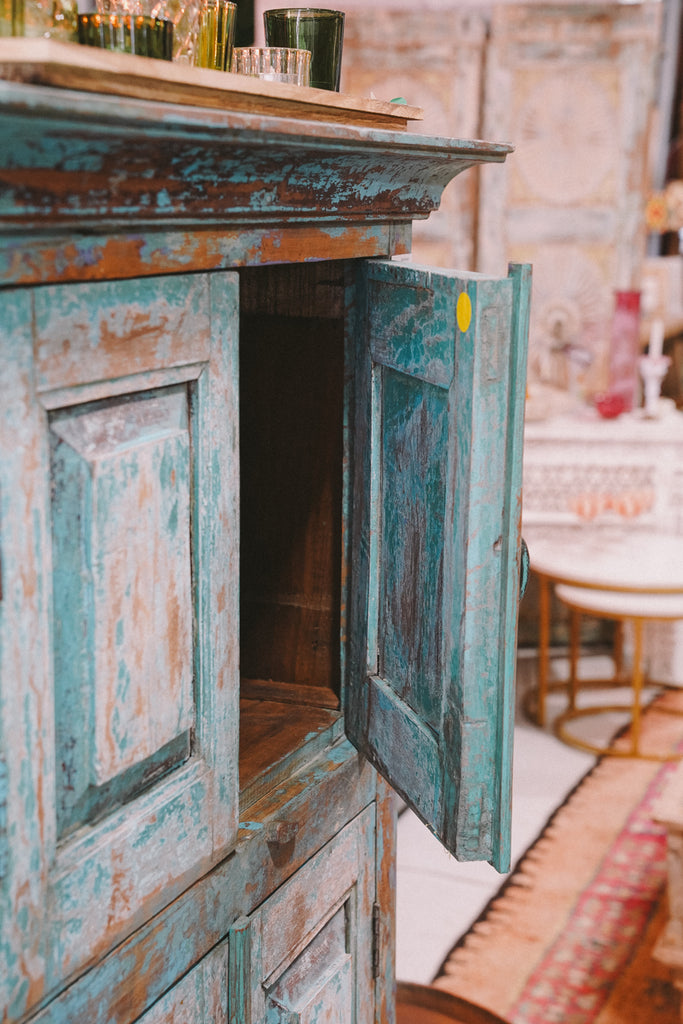 The Zally Cabinet brings timeless elegance to any room with its striking blue patina finish contrasting beautifully against rich dark wood. Featuring two spacious sections with convenient doors, this piece offers both style and practical storage. Perfect for displaying treasures or keeping essentials neatly tucked away, the Zally combines vintage charm with functional design. A supportive addition to your home that works hard while looking absolutely divine.