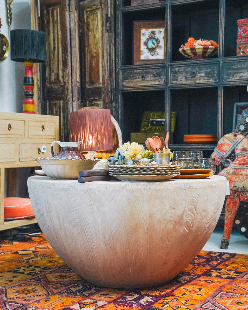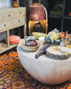The Opal Coffee Table stands approximately 50 cm high with a bold, circular design measuring about 96 cm in diameter. Its solid construction and funky style make it a striking centerpiece, perfect for adding character and functionality to your living space. Ideal for both everyday use and entertaining, this coffee table blends durability with eye-catching appeal.