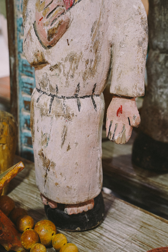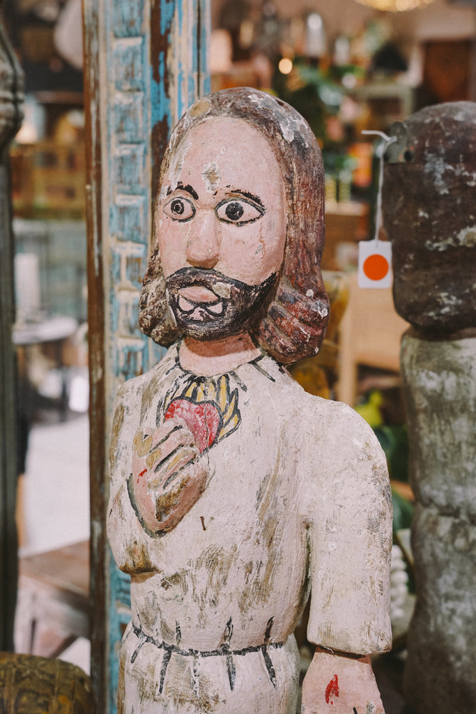 Introducing the Sania Statue – a charmingly naive wooden Jesus figure that's equal parts spiritual and delightfully quirky. With one hand placed thoughtfully over his heart, this handcrafted piece radiates gentle warmth and character. Whether you're displaying it as a standing accent on a shelf or hanging it on your wall, the Sania brings a touch of folk-art charm to any space. Perfect for those who appreciate unconventional religious décor with personality and a wink.
