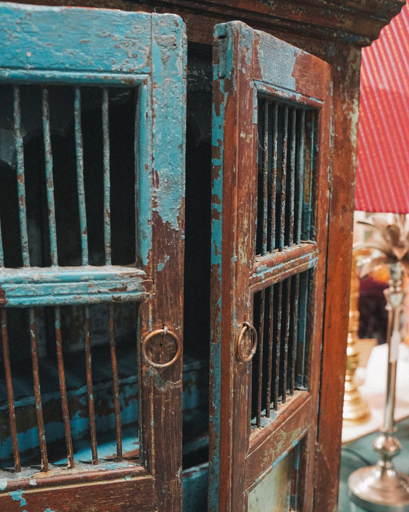 The Cizzy Cabinet is a compact wooden piece measuring 39 cm wide, 51 cm long, and 66 cm high—ideal for a temple or shrine. Its open bars on the window provide gentle ventilation while showcasing your sacred items with elegance. This cabinet offers both functionality and a serene aesthetic, making it a thoughtful addition to your spiritual space.