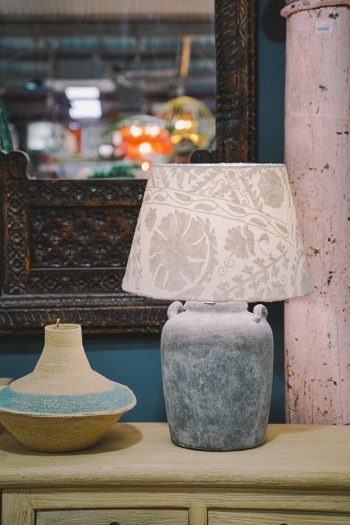 A stunning lamp shade made by the MDH team in India from repurposed fabrics.