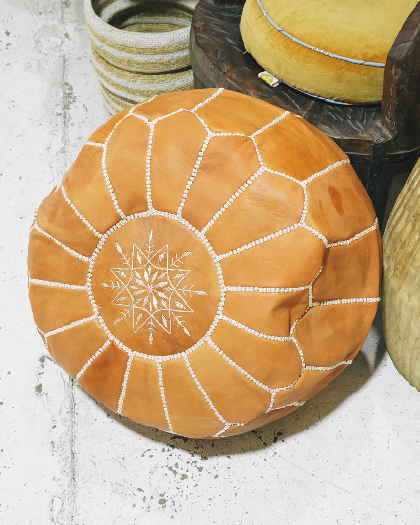 Leather Ottoman with cotton stitching in a contrasting colour.