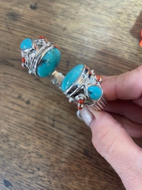 Turquoise Coral Silver Bracelet